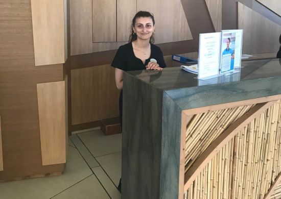Linda loopt stage als receptioniste bij het mooie Blue Lagoon Resort net buiten Kos-stad. Linda heeft Griekse roots, spreekt goed Engels, Russisch en natuurlijk Nederlands en is hier als een vis in het water.