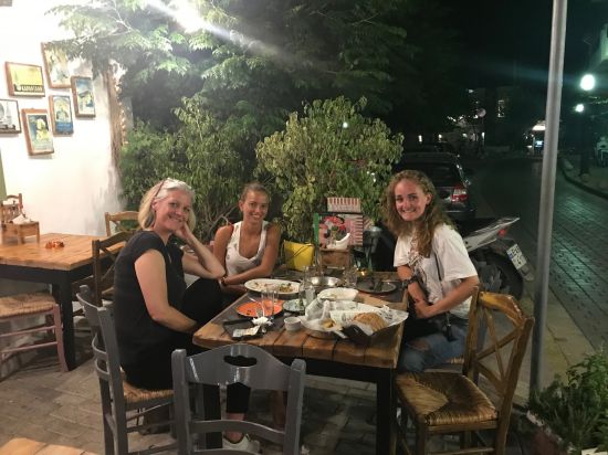 Ga meze eten in de oude stad. Meze zijn de Griekse tapas. Je bestelt een aantal gerechtjes die je met elkaar deelt. Probeer eens kolokithokeftedes (gefrituurde courgetteballetjes), tyri saganaki met honing en sesam, tzatziki of gefrituurde kalamari. Daarbij drink je een ouzo met ijs of de voordelige Retsina wijn. Bijna overal kun je in een karaf ook voordelige huiswijn bestellen. Yamas! Tip van de meiden: Meze Academy in de Kolokotronis straat.
