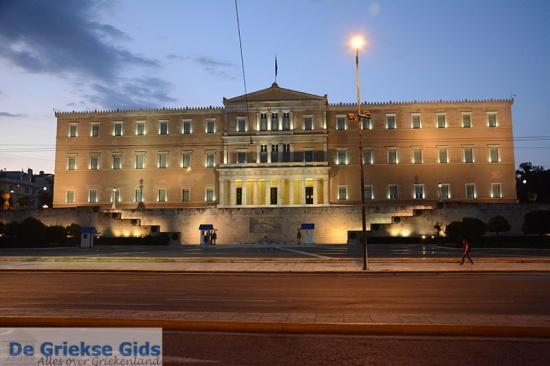 Ik ga even naar het Syntagma-plein, het plein waar het Griekse parlement is en dat zo vaak de laatste dagen op TV is geweest. Met de metro ben je vanaf Piraeus binnen 20 minuten in het centrum van Athene. Ik loop vanaf de ondergrondse metro de trap op en daar zie ik het Griekse parlement. Hoewel het 5.30 u in de ochtend is, staan er nog steeds cameraploegen tegenover het gebouw. Ik zie o.a. een Italiaanse cameraploeg. Verder is het er rustig.