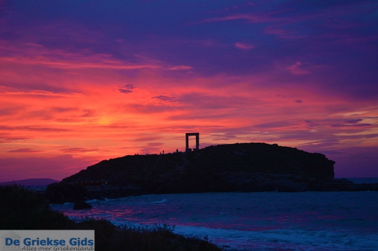 Vanaf boven heb je een prachtig uitzicht over de zee en over Naxos-stad. 's Avonds, wanneer de zon onder gaat is het hier een drukte van belang, want iedereen wil dan de zonsondergang achter de poort fotograferen.
