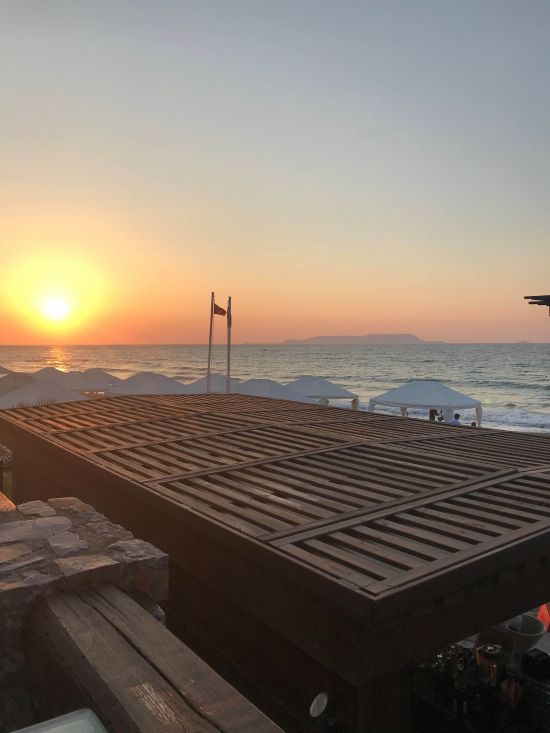 Zonsondergang bij Grecotel Amirandes Exclusive resort.