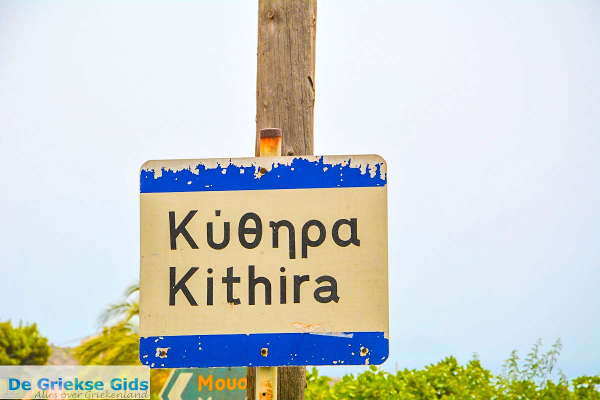 Hoofdstad van het eiland is Chora (Kythira-stad) met ongeveer 300 vaste inwoners. Chora is rondom een middeleeuws kasteel gebouwd dat op de top van een rotsachtige berg ligt. Binnen de muren van het kasteel zijn enkele belangrijke Byzantijnse kerken te zien zoals de kerk van Panagia Mirtidiotissa, de kerk van Pantokrator en de kerk van Agios Ioannis. Er is een prachtig en karakteristiek punt in Chora, met de blauwe deur met een trapje ervoor, waarnaast terracotta potten staan met een bougainville en andere bloemen. Dit plekje is het meest gefotografeerde plekje van het eiland.